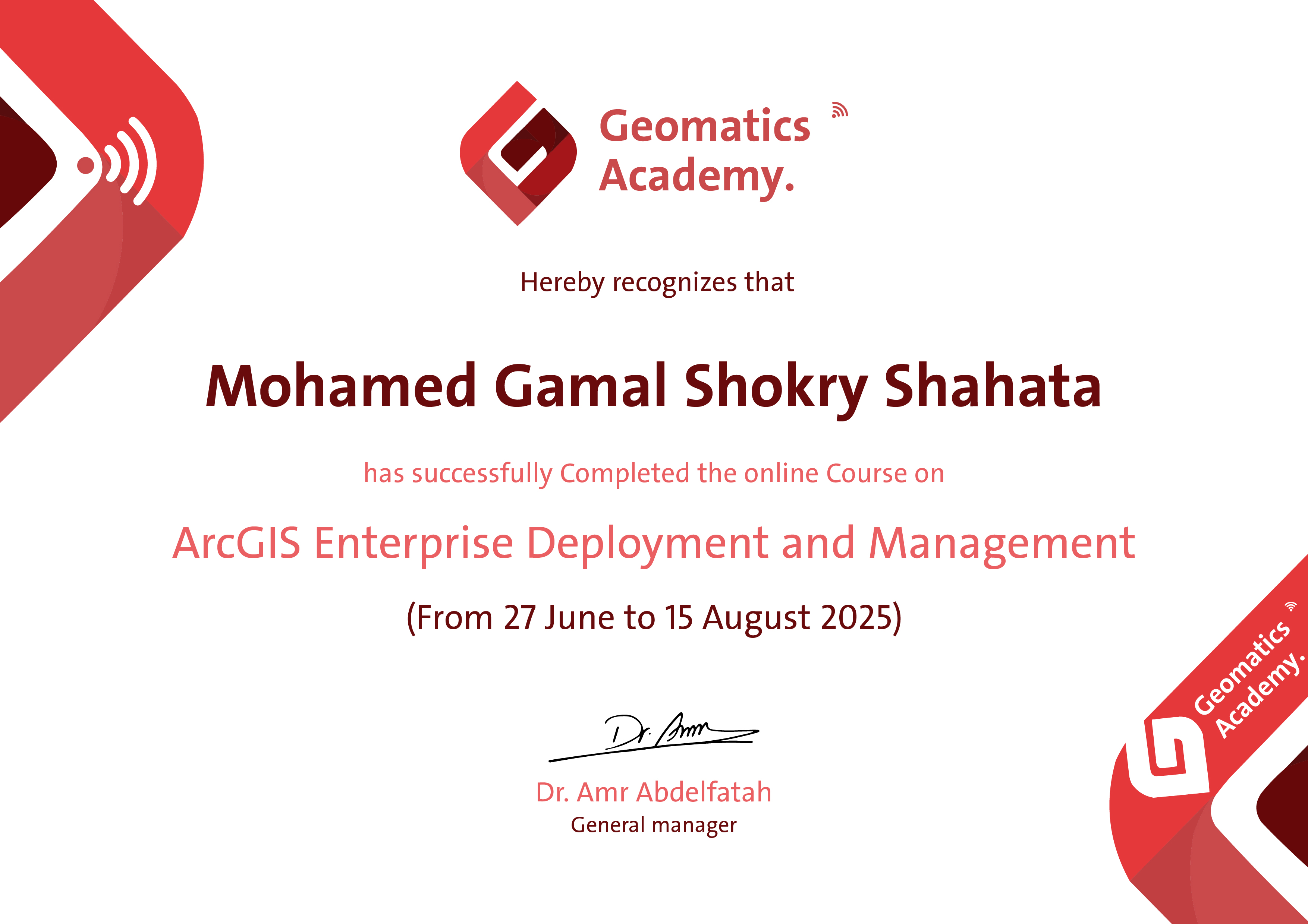 ArcGIS Pro/Online/ServerArcPyModelBuilderQGISGeoServerSurvey123PythonFlutterJavaScriptTypeScriptSQLBootstrapPostgreSQL/PostGISsql serverMySQLSQLiteFirebaseandroid studio عن بعدالكارتوغرافياالتحليل الجيوإحصائيالأتمتةArcGIS Dashboardsتجميع البيانات الميدانيةDockerREST APIsVS Code